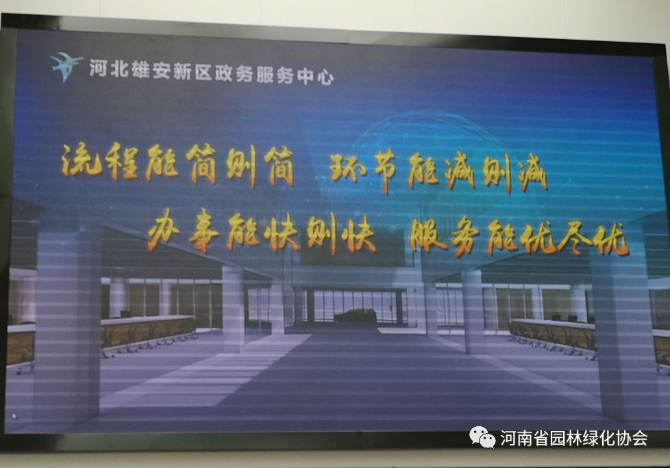 2017年4月1日,中共中央、国务院决定设立雄安新区,作为北京非首都功能疏解集中承载地,雄安新区建设要求“打造优美生态环境,构建蓝绿交织、清新明亮、水城共融的生态城市”,而雄安新区建设提出的“蓝绿交织、清新明亮、水城共融”的具体生态环境要求,现代化的政务服务大厅,给考察团留下了深刻印象,大家对祖国日新月异的发展感到由衷的自豪,同时也从园林景观在城市建设中比重加大看到了未来园林行业的蓬勃发展!